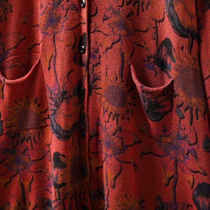 Cárdigan de punto de manga larga para mujer con botones, botones y bolsillos, estampado de girasoles y Buddha Stones. - Rojo - US4-8/10, UK/AU8-12/14, EU36-40/42 (F) - image 12
