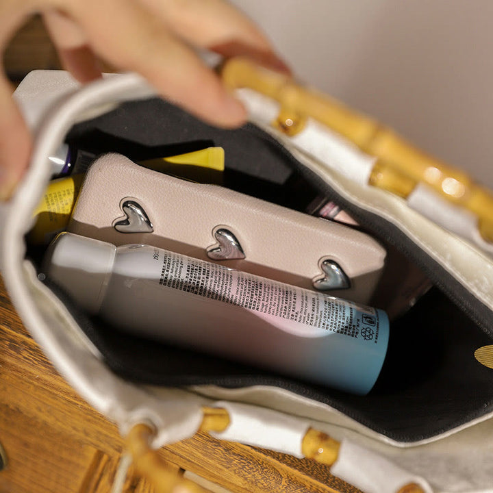 Bolsos de mano con borlas y asas de bambú bordadas con Buddha Stones