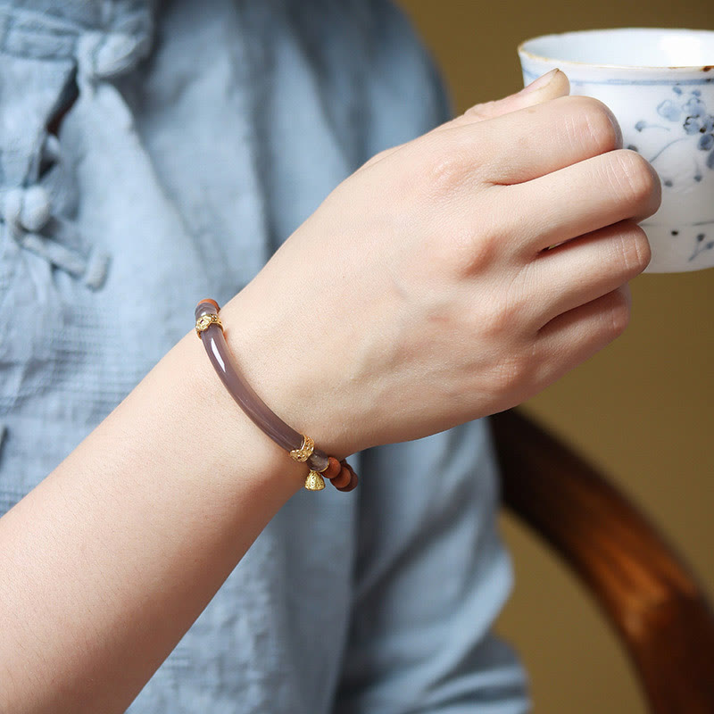 - Material: Sándalo, Ágata gris, Calcedonia, Plata de ley 925 bañada en oro