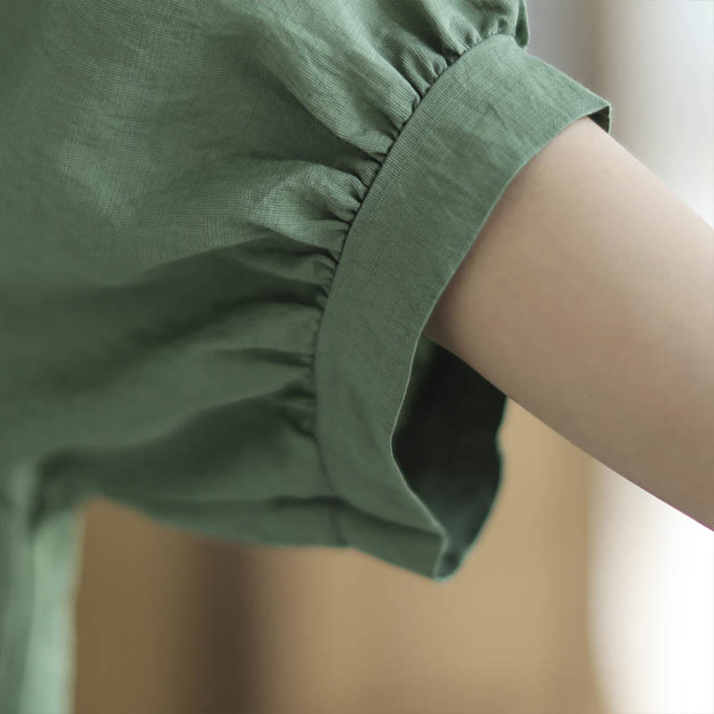 Buddha Stones Camiseta de Manga Corta de Algodón y Lino con Bordado Floral Pequeño y Cuello en V - image 8
