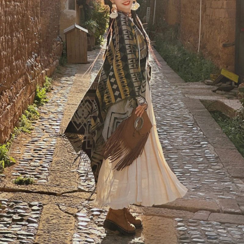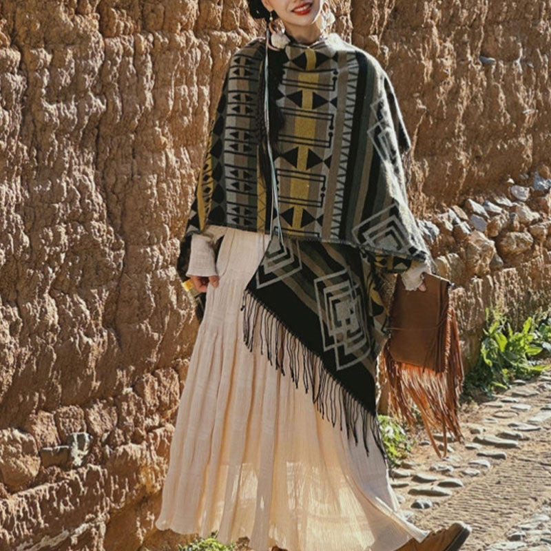 La bufanda con borlas y patrón geométrico de piedras de Buda es una fusión de estilo y espiritualidad. Este acogedor abrigo de viaje invernal, adornado con borlas, combina comodidad con una sensación de continuidad espiritual . sus patrones geométricos simbolizan la interconexión de la vida, lo que lo convierte en un accesorio ideal para quienes buscan calidez y un recordatorio de la unidad de la vida .