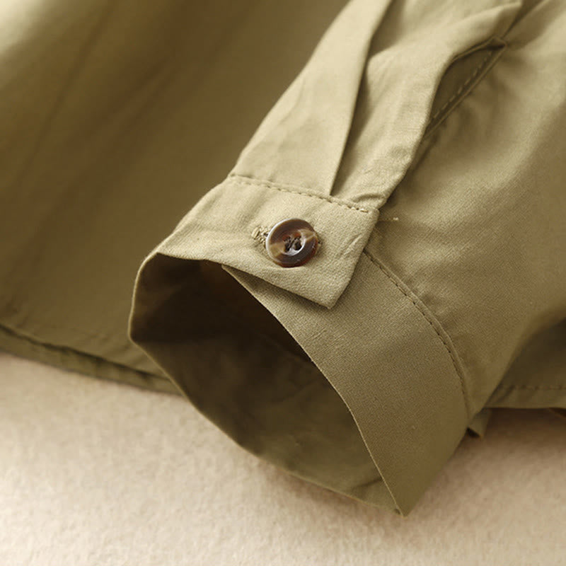 Camisa de algodón de manga larga con solapa y doble botonadura lisa con Buddha Stones para mujer - Caqui oscuro - US12, UK/AU16, EU44 (2XL) - image 13