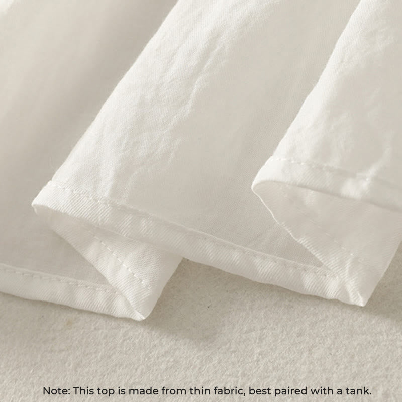 Camisa de algodón de manga larga con volantes y botones blancos con Buddha Stones para mujer