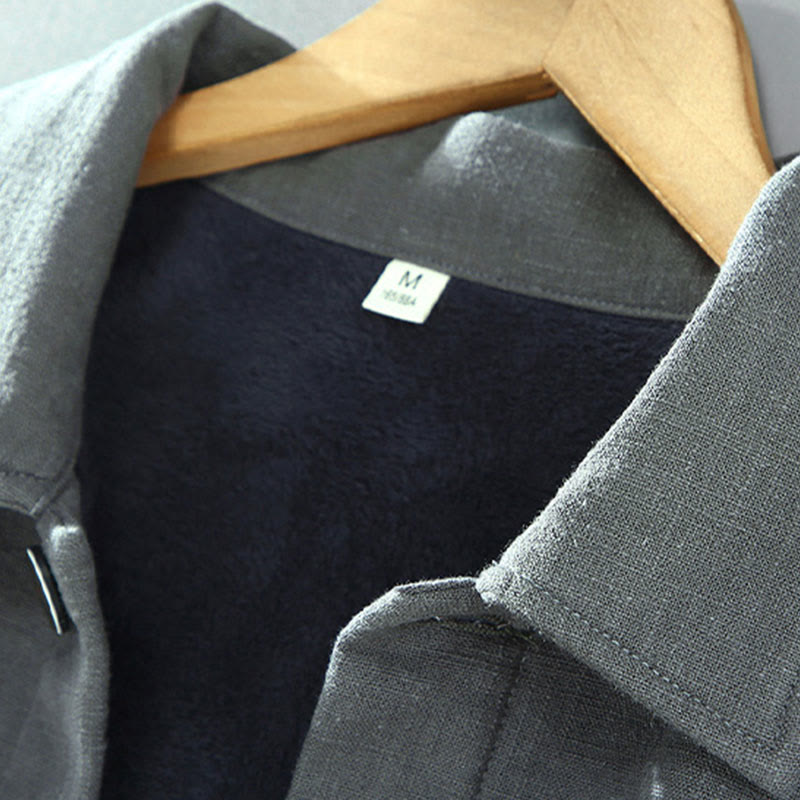 Chaqueta térmica de manga larga Buddha Stones para hombre, de lino y ramio, con forro polar y bolsillos.