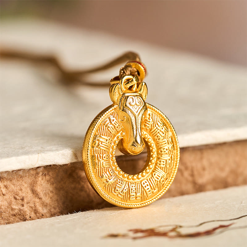 Collar con colgante de cobre chapado en oro con hebilla de la paz y el símbolo Fu , con Buddha Stones del Año del Caballo y símbolo de la paz. - Caballo de cobre - image 0
