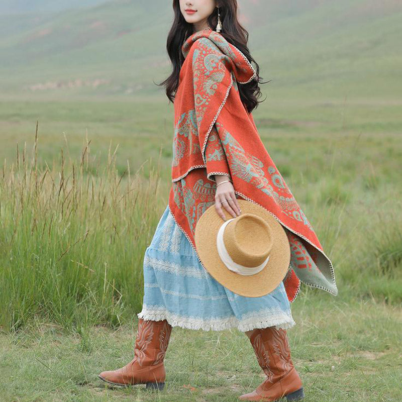 Mantón tibetano de piedras de Buddha Stones , patrón Simple, bufanda de viaje acogedora para invierno - Naranja 150*130 cm - image 0