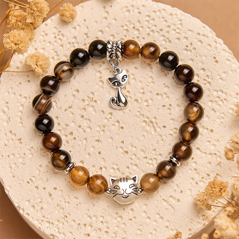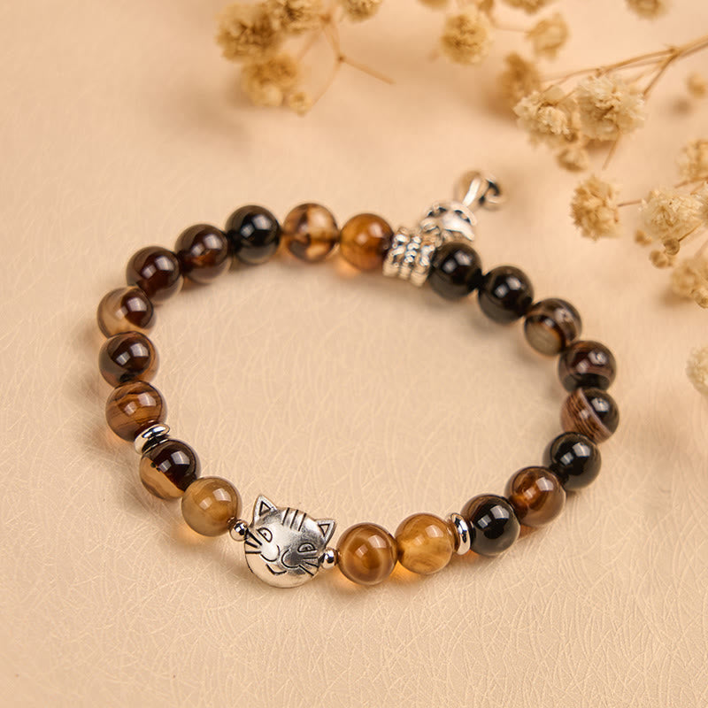 Pulsera protectora de cuentas de ágata rayada marrón oscuro con gato siamés y chocolate de Buddha Stones - Gato siamés chocolate (circunferencia de muñeca: 15-16 cm) - image 0