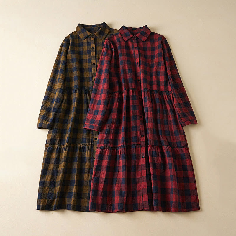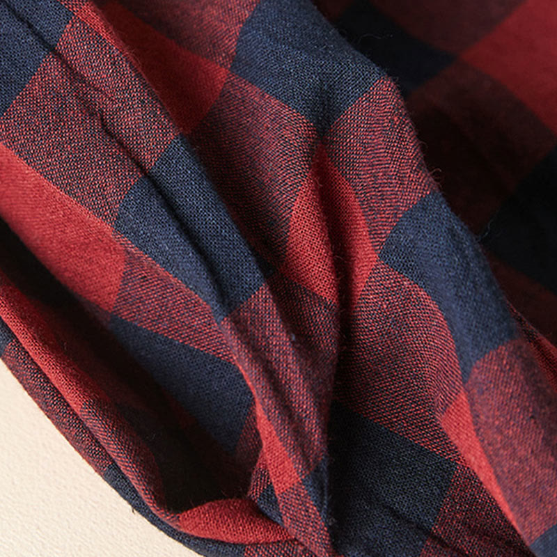 Vestido midi de lino y algodón con bolsillos, manga larga y diseño de botones a cuadros en contraste de Buddha Stones - Carmesí - US8-10,UK/AU12-14,EU40-42 (2XL) - image 12