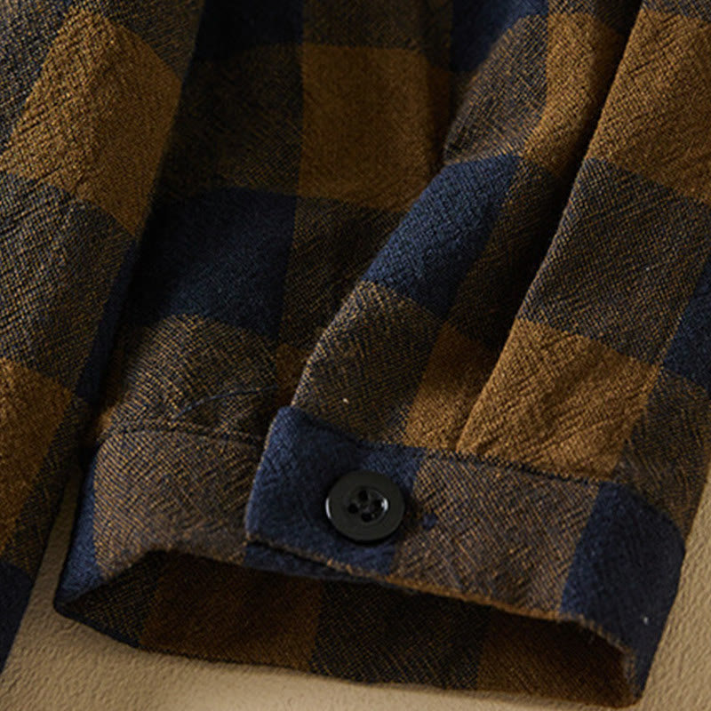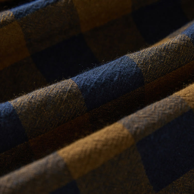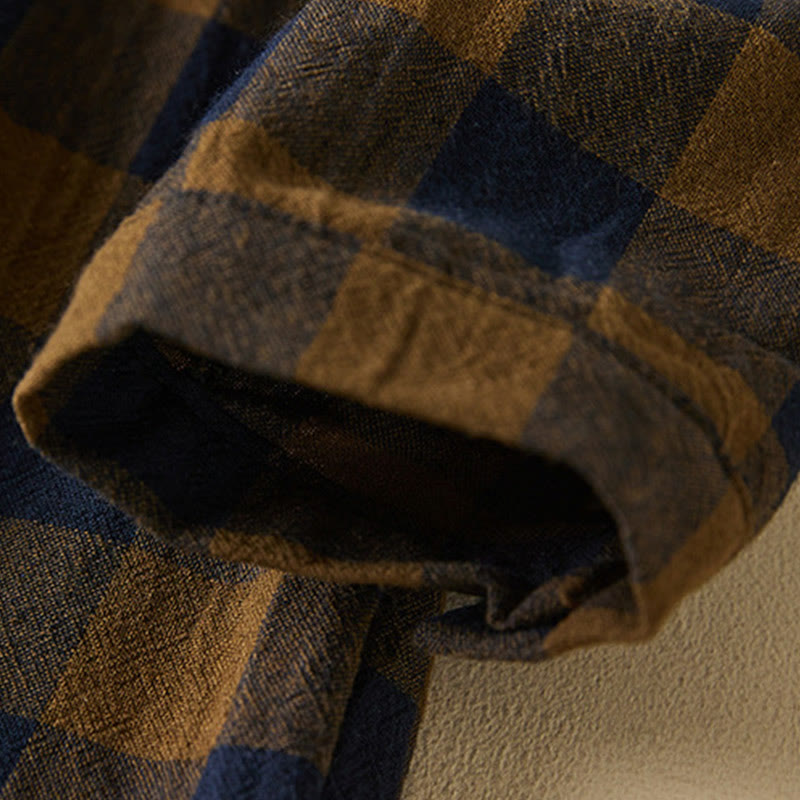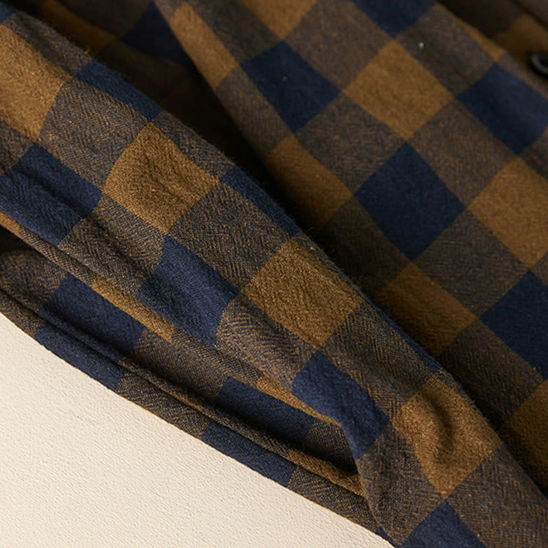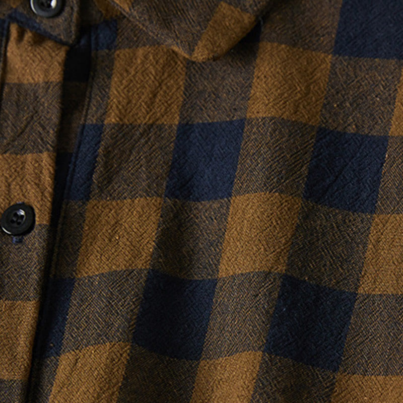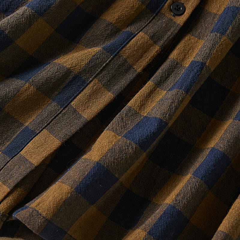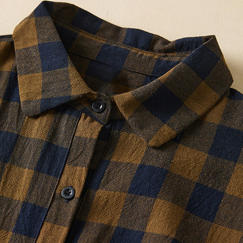 Vestido midi de lino y algodón con bolsillos, manga larga y diseño de botones a cuadros en contraste de Buddha Stones - Vara de oro oscura - US8-10,UK/AU12-14,EU40-42 (2XL) - image 1