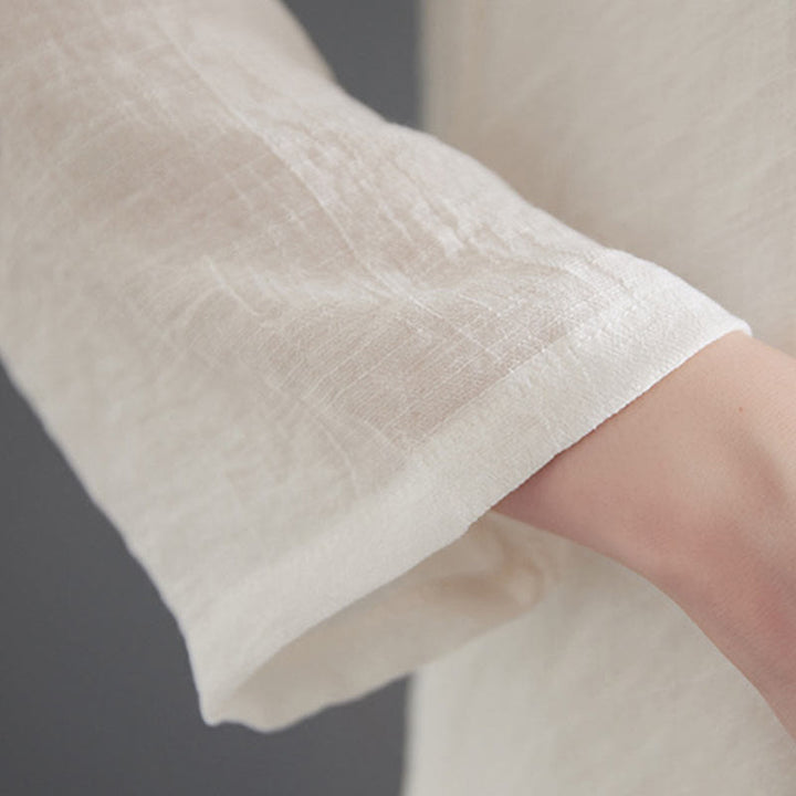 Conjunto de 2 piezas de camisa y pantalones de manga larga con diseño de rana china y botones de Buddha Stones, de algodón y lino, para meditación, zen y tai chi, para mujer.