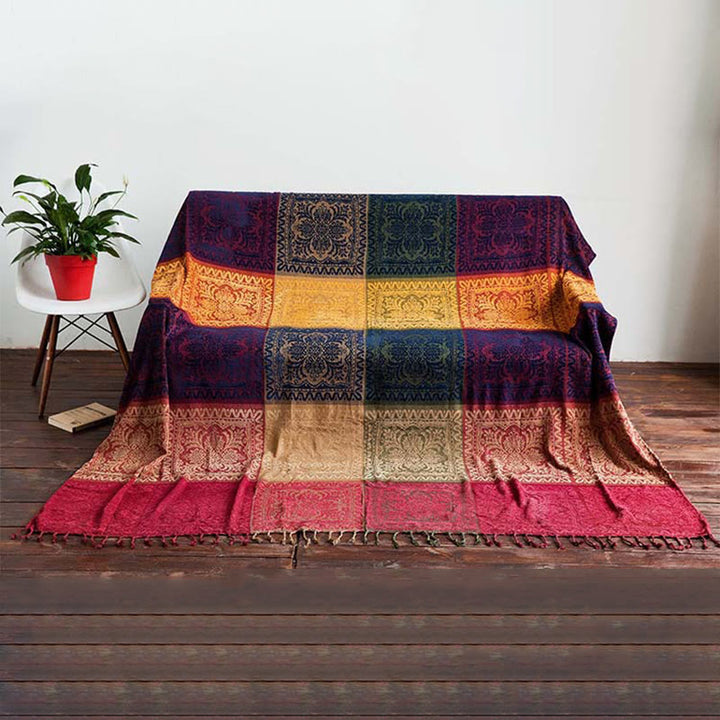 Experimente el arte de los artesanos nepaleses con la manta artesanal teñida a mano con estampado floral tibetano de piedras de Buda. Tejido a mano, presenta elegantes diseños florales , ricas texturas y brinda calidez y comodidad en cualquier entorno.