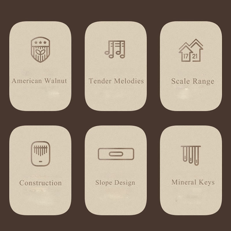 - PD: 1. Tu Kalimba será diferente a la que se muestra en la imagen. Debido a las propiedades naturales de la madera, cada Kalimba es única.