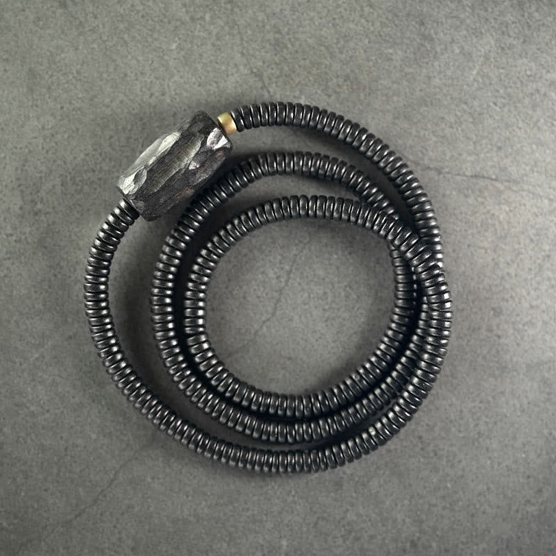 Pulsera de triple vuelta con Buddha Stones, madera de ébano, cobre y latón