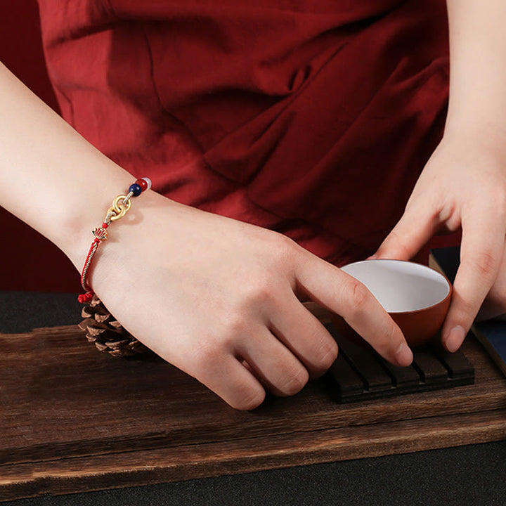 En los linajes del budismo tibetano vajrayana, es común atar una cuerda o hilo alrededor de la muñeca durante las ceremonias. Tradicionalmente, el lama bendice la cuerda y luego hace un nudo y le impregna un mantra. Al igual que otras tradiciones, se dice que estos cordones rojos traen suerte y ofrecen protección. En la antigua leyenda china, el hilo rojo del destino es invisible y une a todos aquellos cuyas vidas se entrelazarán. Está gobernado por el dios chino del matrimonio, Yue Lao, ya que se asocia principalmente con el vínculo entre dos personas destinadas a casarse. A lo largo de la historia y en todas las filosofías, el hilo rojo se ha usado para protección, fe, buena suerte, fuerza y conexión.