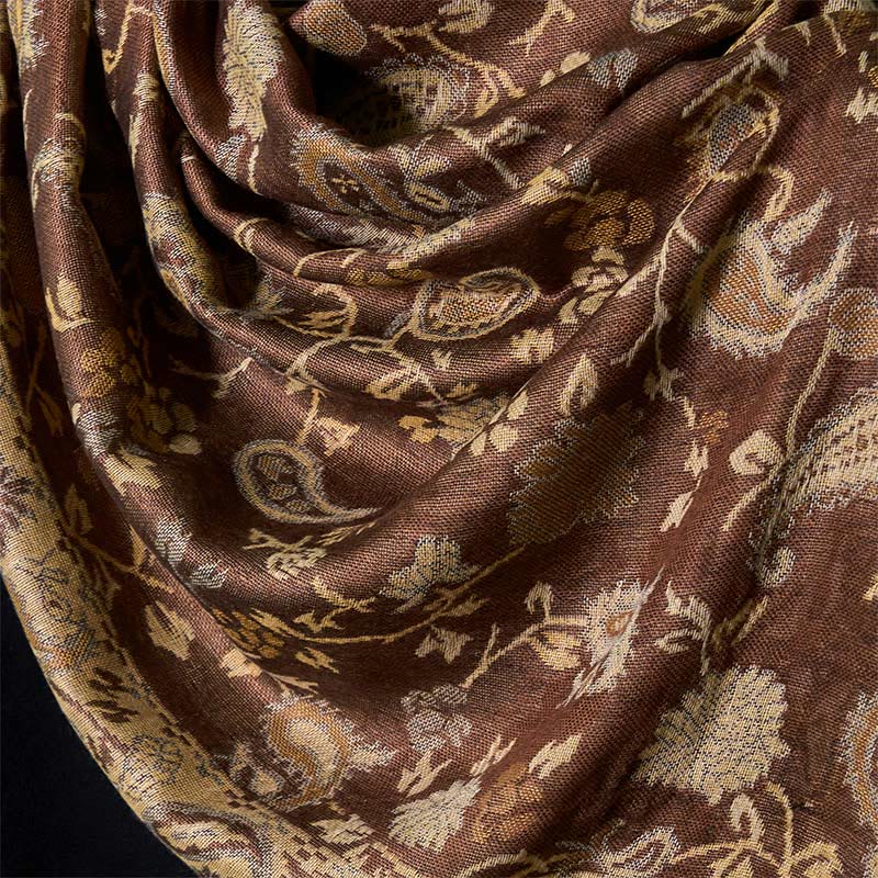Bufanda chal suave con borlas y estampado floral de flores de anacardo de primavera y Buddha Stones - Vara de oro oscuro 180*70cm - image 0