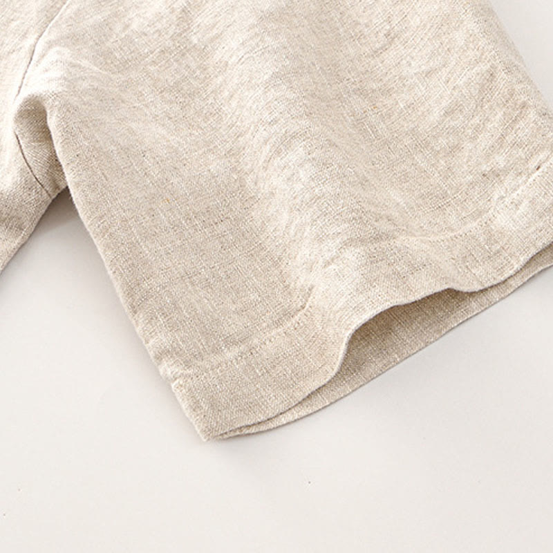 Buddha Stones Camisa de lino para hombre, de verano, de manga corta, con botones y bolsillos