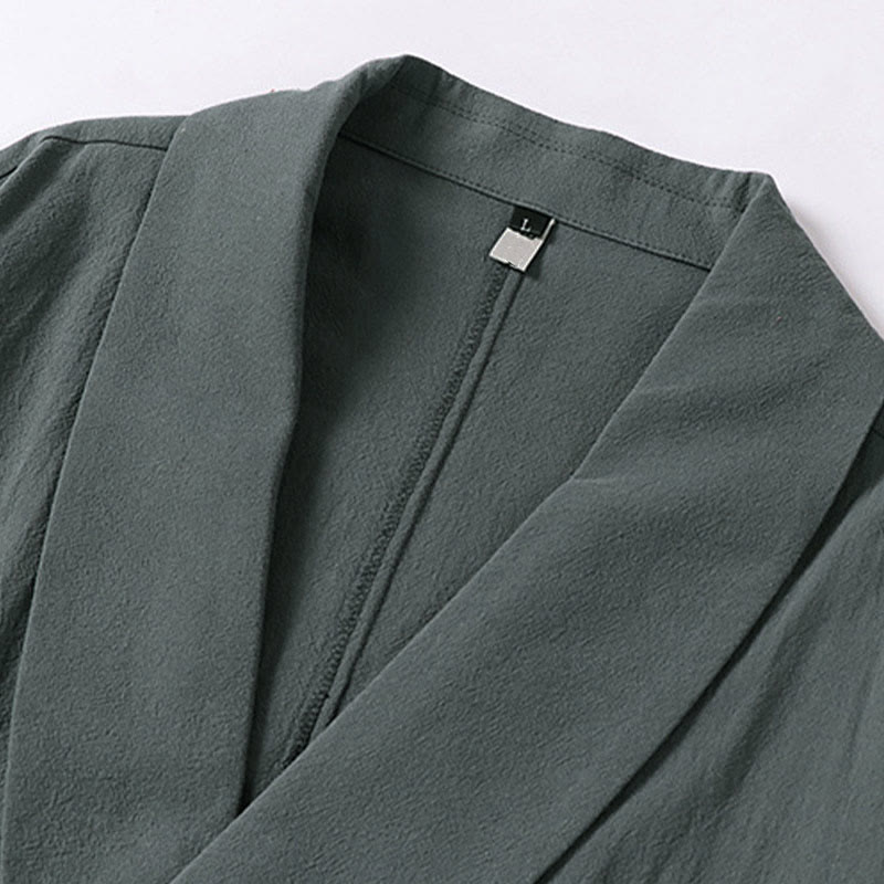 Buddha Stones Camisa de verano para hombre de algodón y lino con cuello en V y solapa de media manga - image 6
