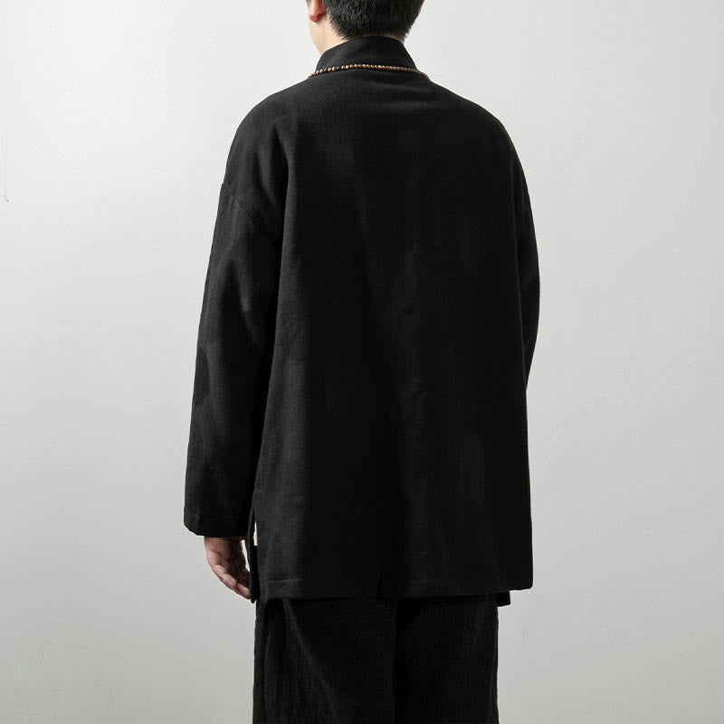 Camisa de algodón jacquard de manga larga con cuello en V y color liso para hombre con Buddha Stones