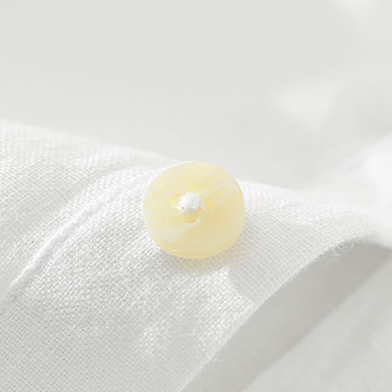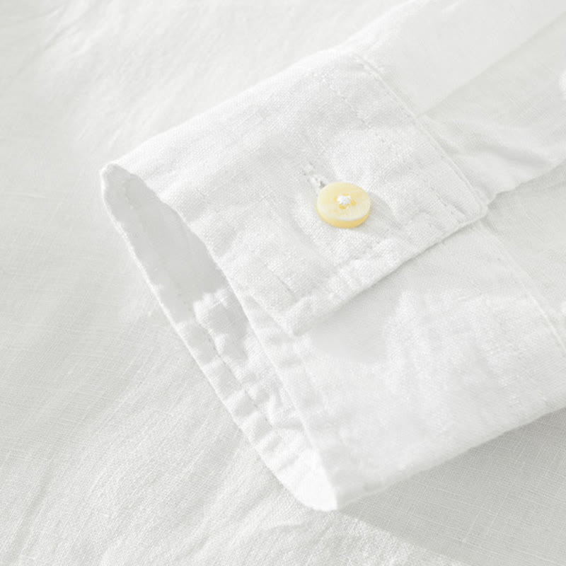 Camisa de lino para hombre, manga larga, suelta, color liso, con medio botón y Buddha Stones - image 10
