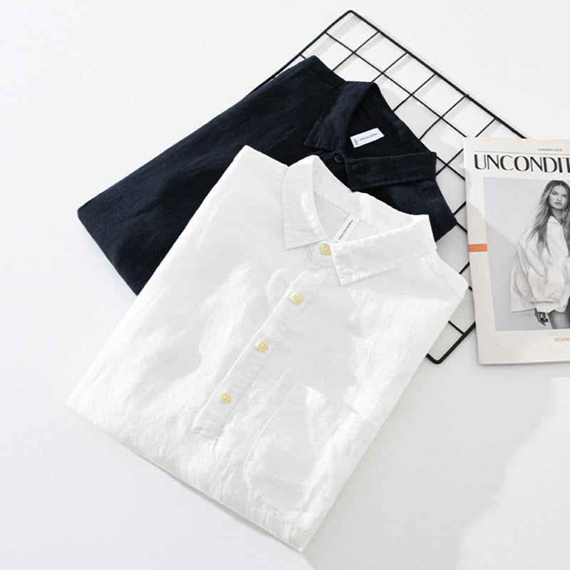 Las prendas sueltas de manga larga de color liso están confeccionadas con lino ligero, lo que garantiza comodidad y transpirabilidad. El diseño de medio botón ofrece un look relajado y refinado, ideal para diversas ocasiones. Esta versátil prenda encarna la simplicidad y la elegancia , permitiendo libertad de movimiento y flexibilidad, mientras que el tejido natural promueve una conexión con la naturaleza , perfecta para un estilo de vida relajado. 💕
