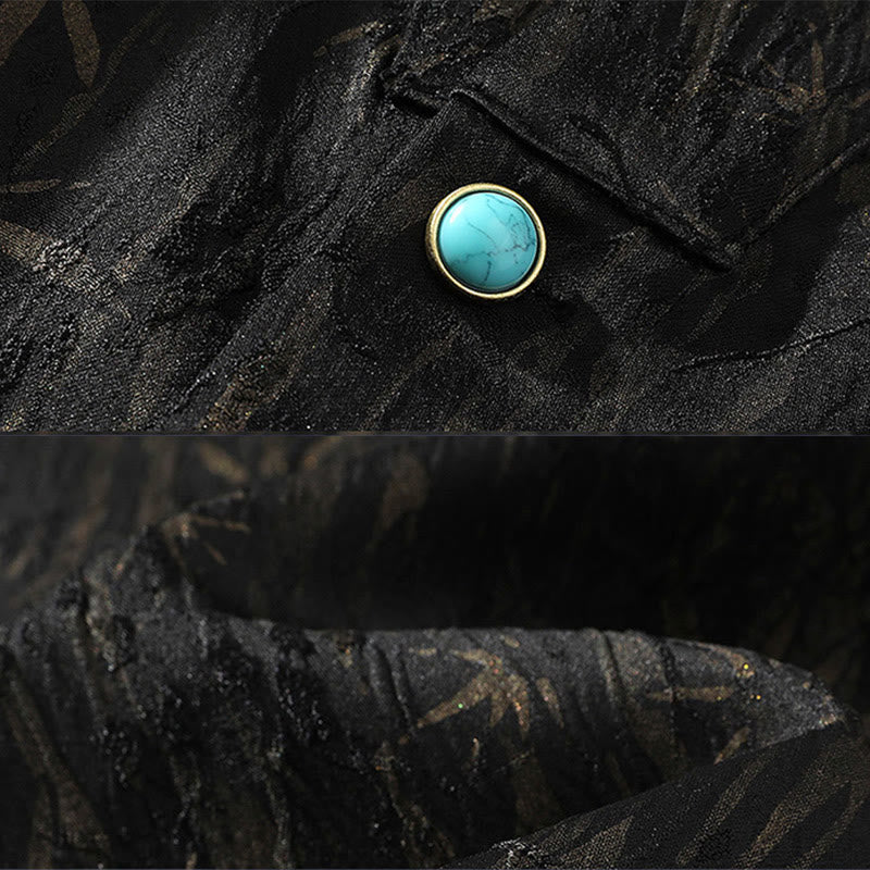 Camisa de lino de media manga para hombre con estampado de bambú dorado jacquard de verano Buddha Stones