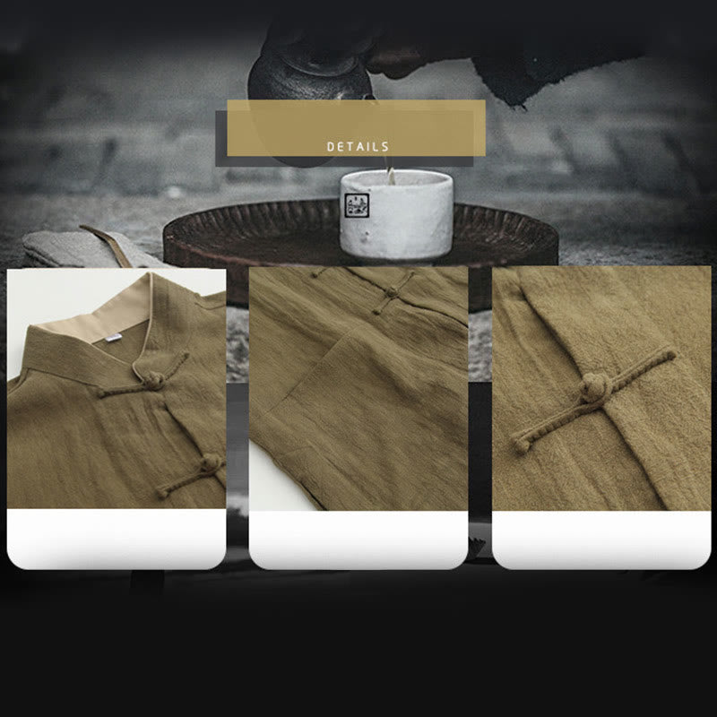 Camisa de manga larga con Buddha Stones Tang, de algodón y lino, para hombre - image 11