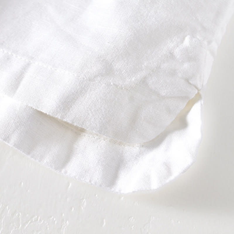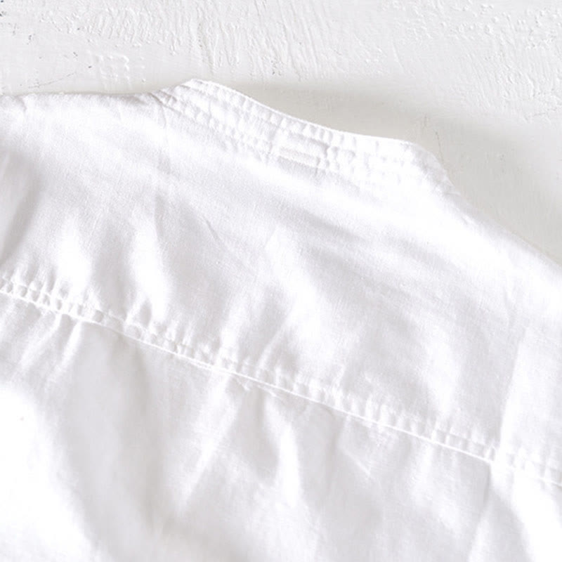 Camisa de verano para hombre de algodón y lino con cuello alto y manga corta, con medio botón, de Buddha Stones - Blanco - US/UK/AU42, EU52 (3XL) - image 6