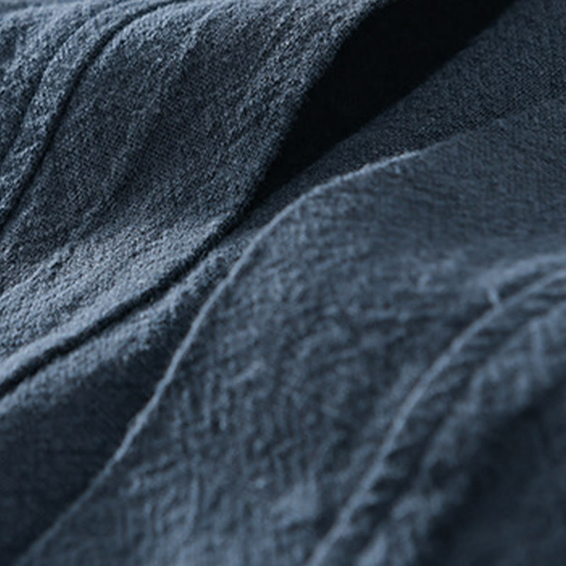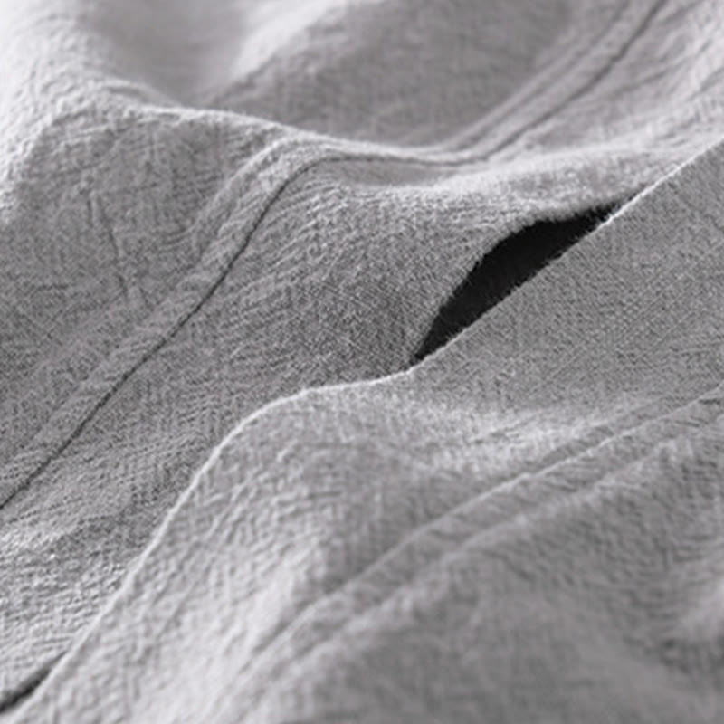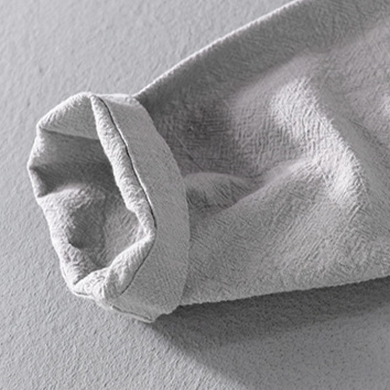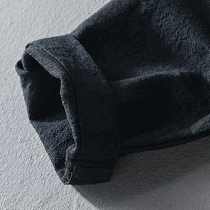 Camisa de lino y algodón de manga larga con cuello alto y colores puros para hombre con Buddha Stones