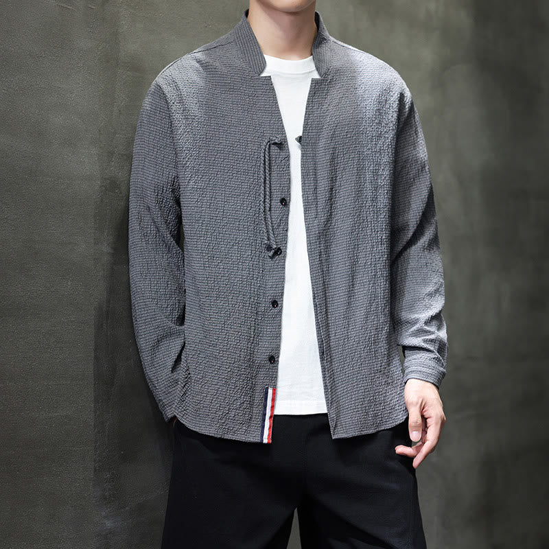 Camisa informal de hombre con botones de rana y Buddha Stones en color liso
