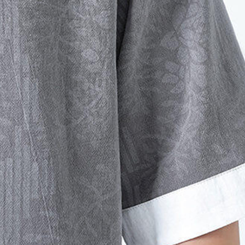 Buddha Stones Camisa de algodón de manga corta con botones de rana y bolsillos para hombre con estampado de flores de verano y hierba - Gris - US/UK/AU46, EU56 (5XL) - image 4