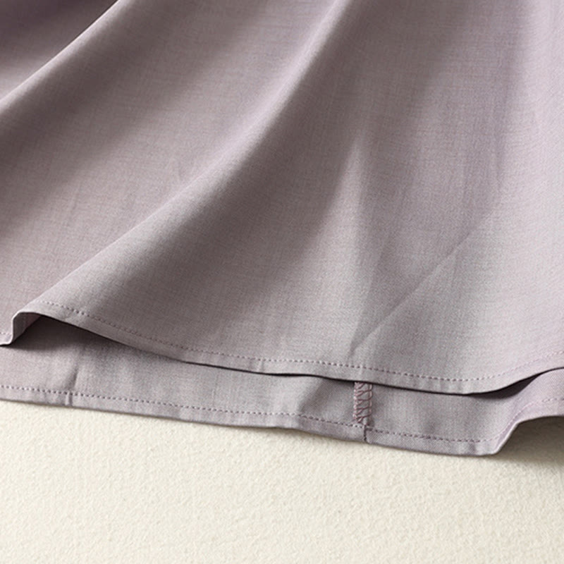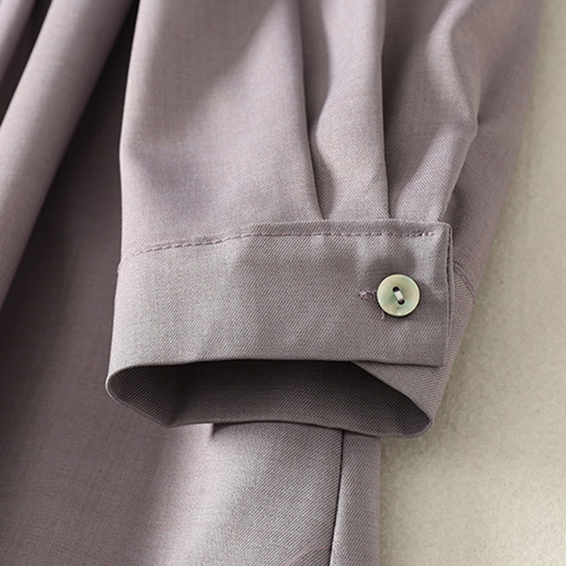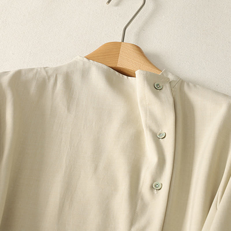 Buddha Stones Vestido midi de algodón para mujer, liso, con cordones, manga larga, botones, cuello alto y bolsillos.