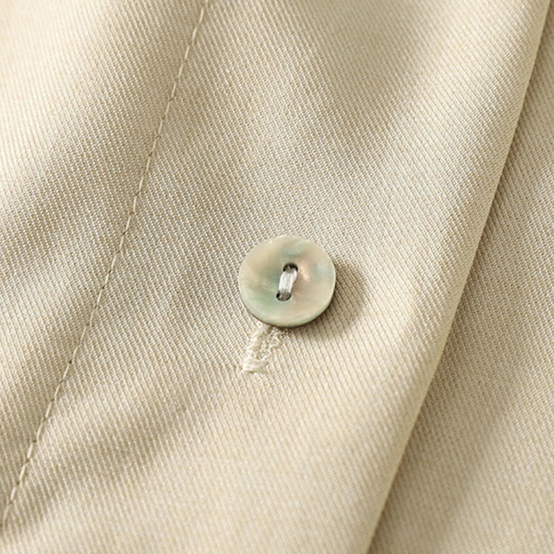 Buddha Stones Vestido midi de algodón para mujer, liso, con cordones, manga larga, botones, cuello alto y bolsillos. - image 15