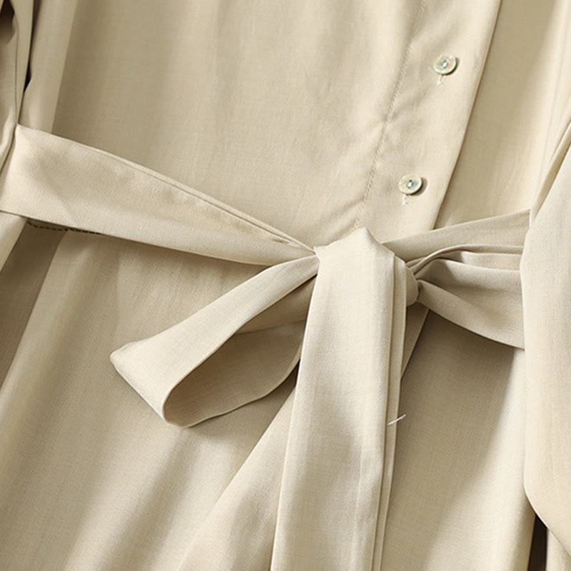 Buddha Stones Vestido midi de algodón para mujer, liso, con cordones, manga larga, botones, cuello alto y bolsillos. - image 1