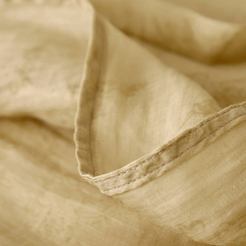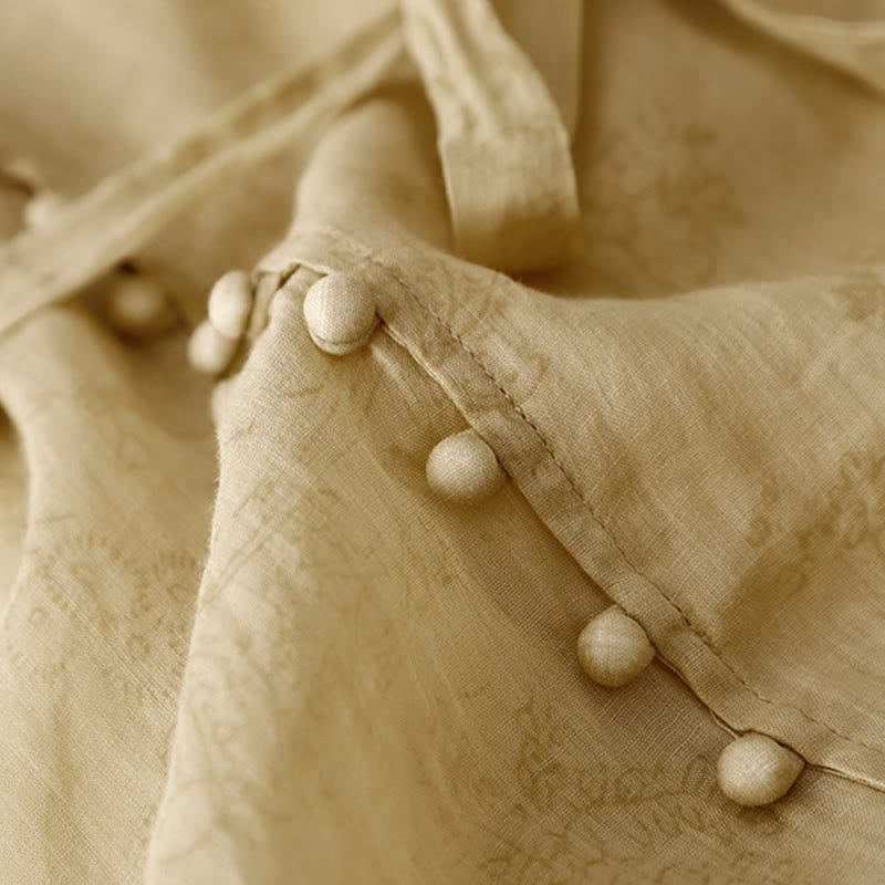 Vestido midi de verano de algodón y lino con cuello en V, mangas cortas y cordones para mujer, con bolsillos y estampado de Buddha Stones