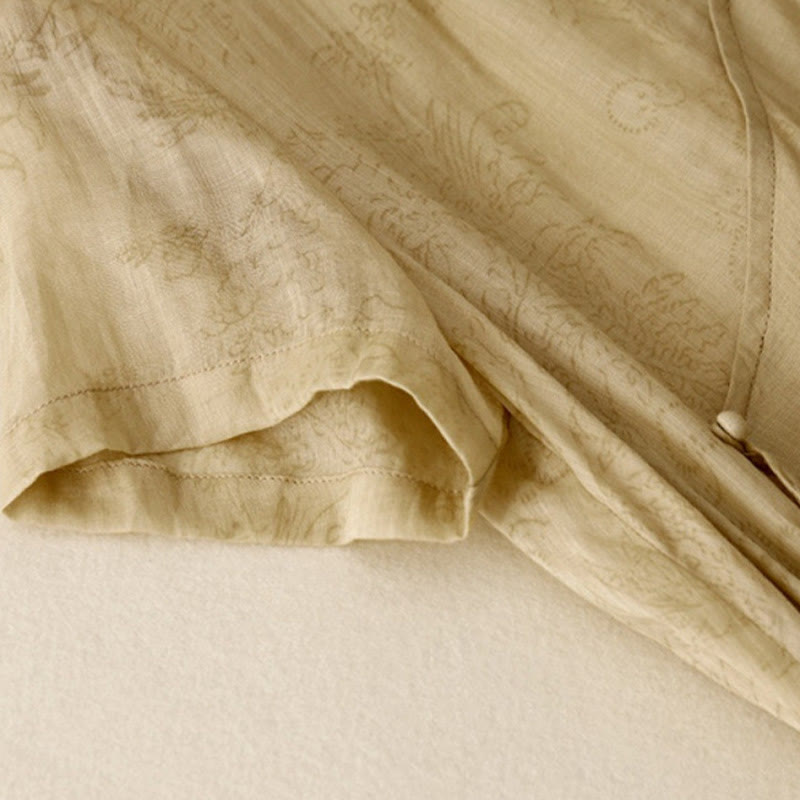 Vestido midi de verano de algodón y lino con cuello en V, mangas cortas y cordones para mujer, con bolsillos y estampado de Buddha Stones - image 1