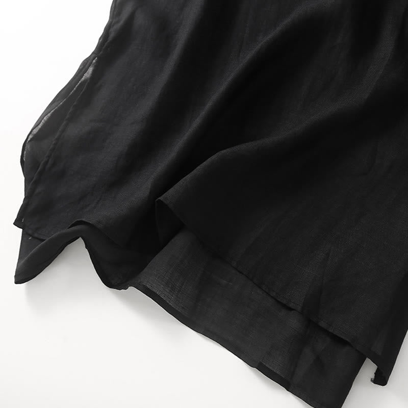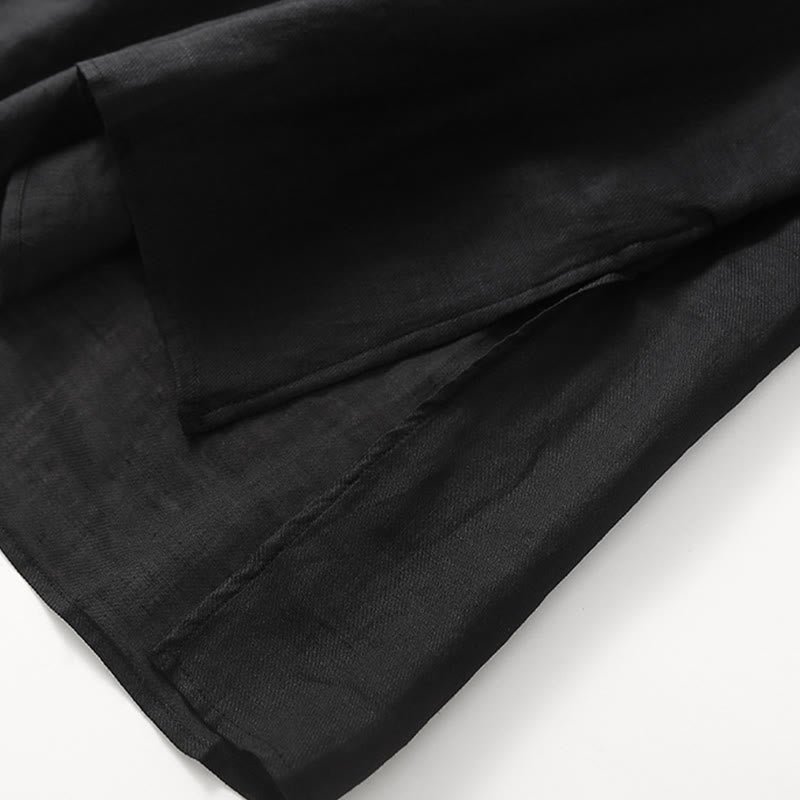 Vestido midi informal de lino y algodón con mangas tres cuartos y bordado de Buddha Stones - Negro - US8-10,UK/AU12-14,EU40-42 (2XL) - image 0